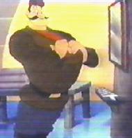 No, this is not Saddam. This is Bluto, Popeye's primary advesary. Same attitude, but a different reality.