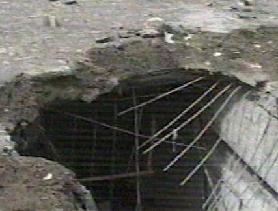 Saddam WAS here when the first missiles and bunker buster bombs of the war made this hole in the ground. It's not certain if he was vaporized in the blast or if he escaped with only serious leg injuries. The world continues to be deceived by his body doubles.