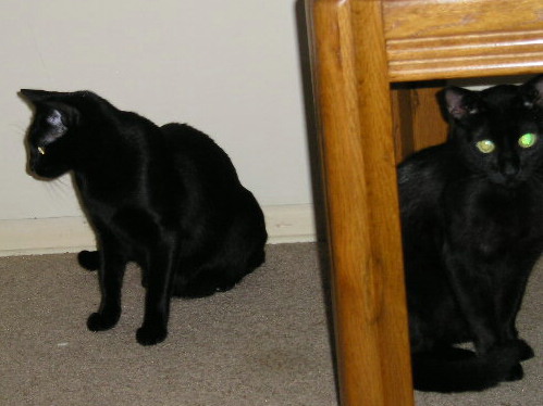 This story has been written over the period of two weeks. As of now, Grumby no longer finds it necessary to hide under the end table and is comfortable playing and sleeping out in the room and feeling like one of the family. All three cats have now almost completely adapted to their new family members.