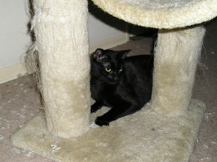 By the next day, and still no sign of Grumby, I had to resign myself to the fact that he was gone and I could only hope that he would either find a good home or be able to take care of himself living as a Ferrell cat. I decided the best thing for me to do was to try to forget about him. Besides, Cuddles was showing that she was much happier and being more loving without the worry about Grumby being in the apartment. By today, Saturday, the sadness was leaving me and I wasn’t thinking too much about little Grumby.